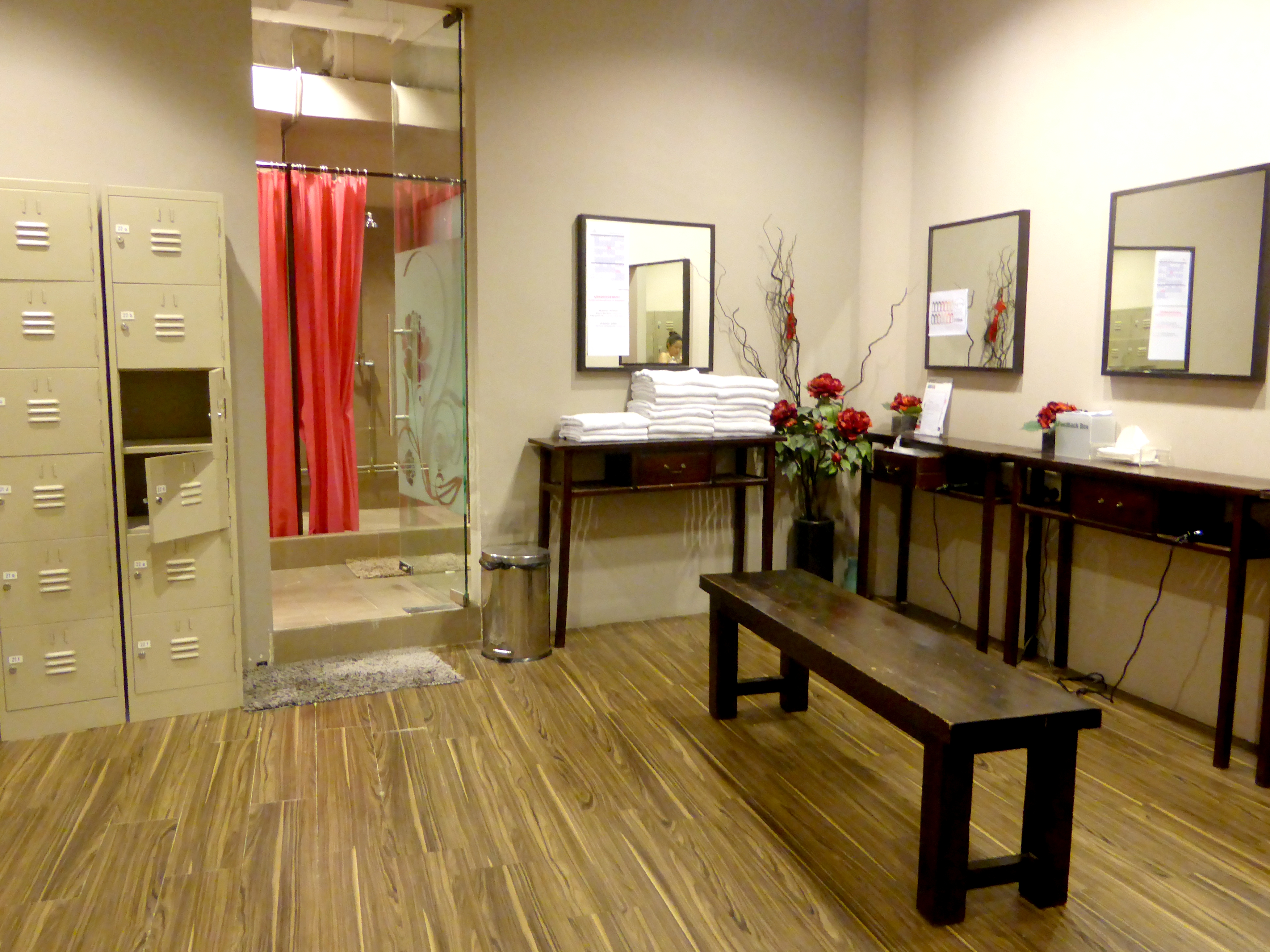 Towels: Provided in the yoga room and changing room. Towels are not very new or thick but at least they do not have holes.