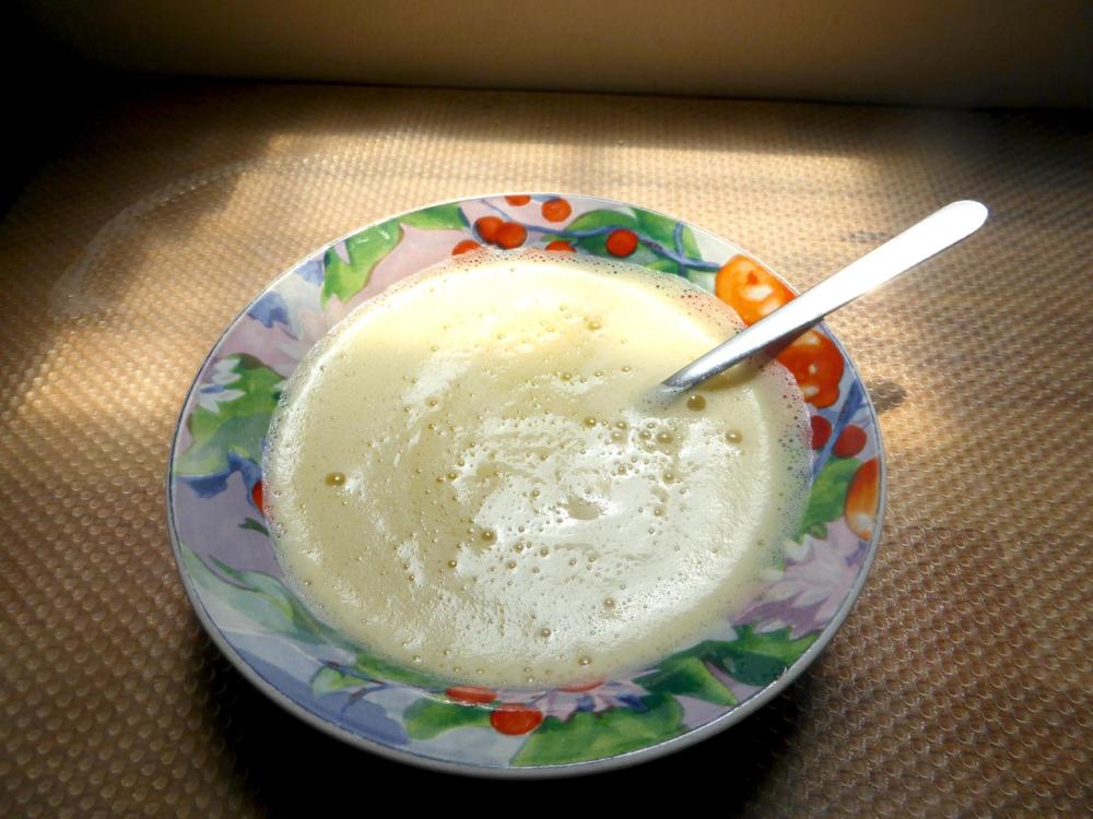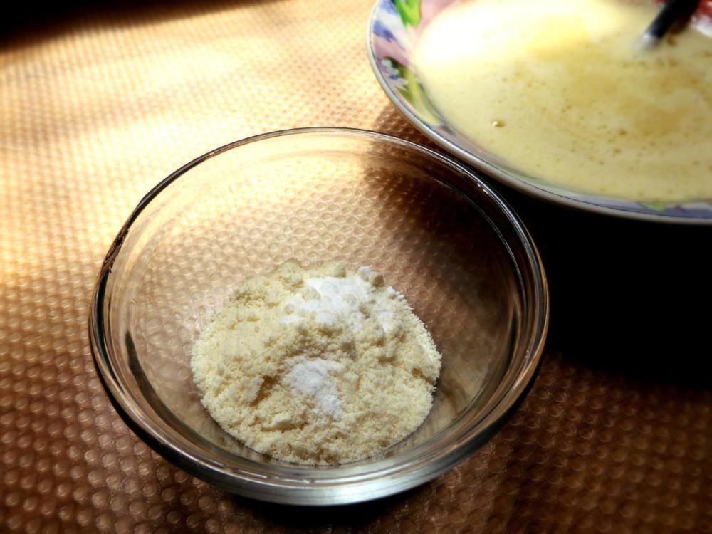 Added about 30ml of coconut flour and a pinch of baking soda, sieved.