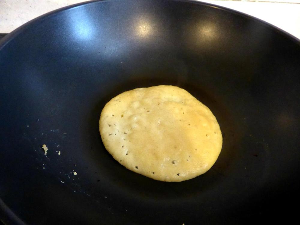The pan was greased with my favourite coconut oil. For pancakes, medium low is ideal and the pan should not be too oily.